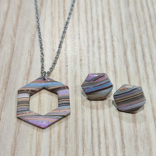 Conjunto de collar y pendientes realizados a mano con arcilla polimérica