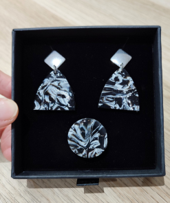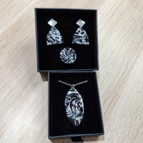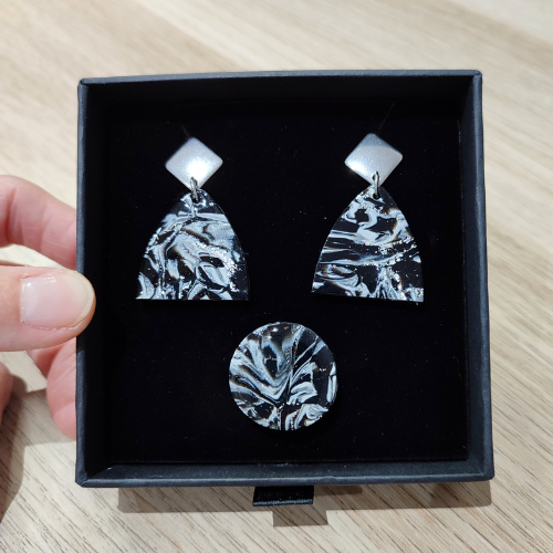 Están realizados a mano con Arcilla Polimérica en tonos Plata, Negro y Blanco y Acero en color Plata