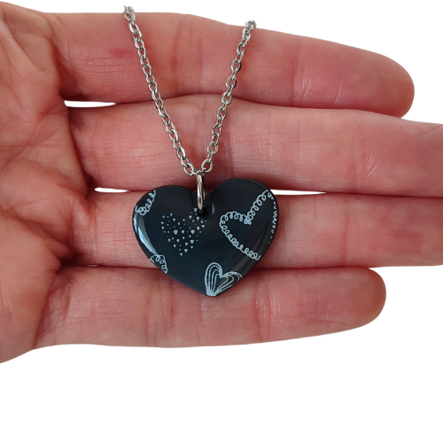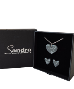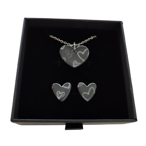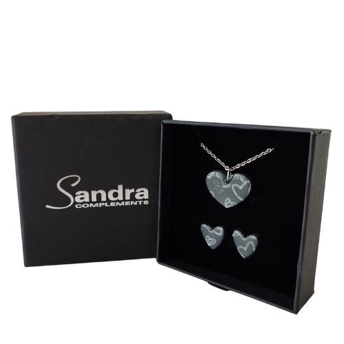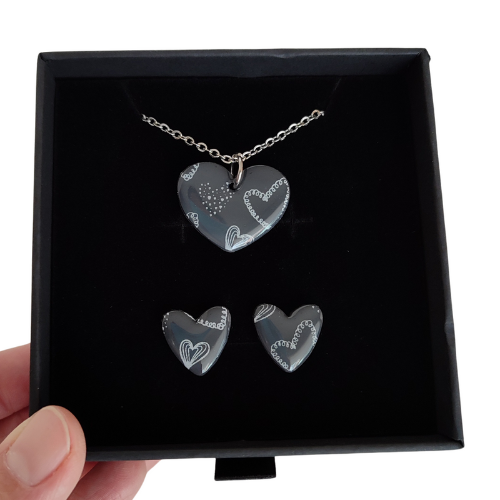 Conjunto de Collar y Pendientes Hechos a Mano con Arcilla Polimérica en tonos grises y blancos
