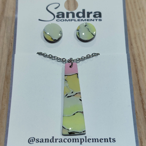 Conjunto de collar y pendientes realizados a mano con arcilla polimérica