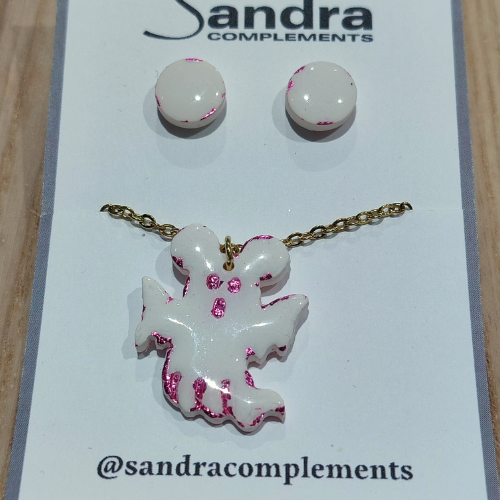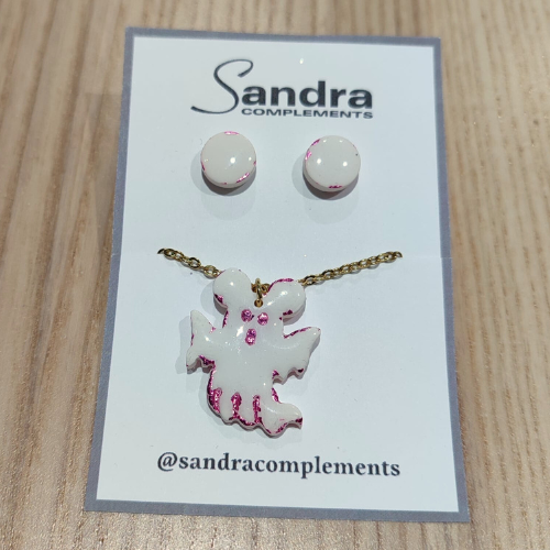 Conjunto de collar y pendientes realizados a mano con arcilla polimérica