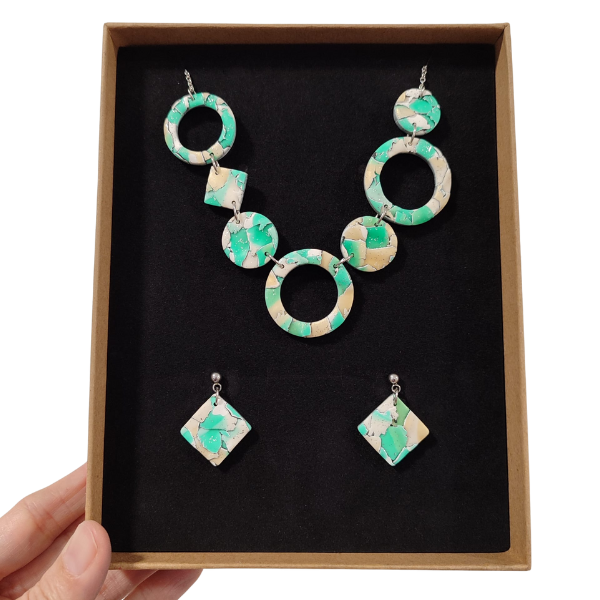 Conjunto de Collar y Pendientes realizados a mano con Arcilla Polimérica